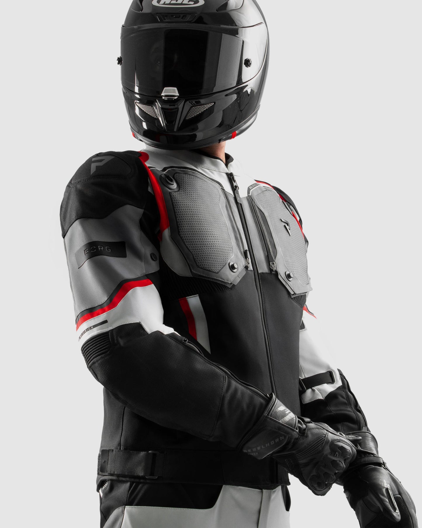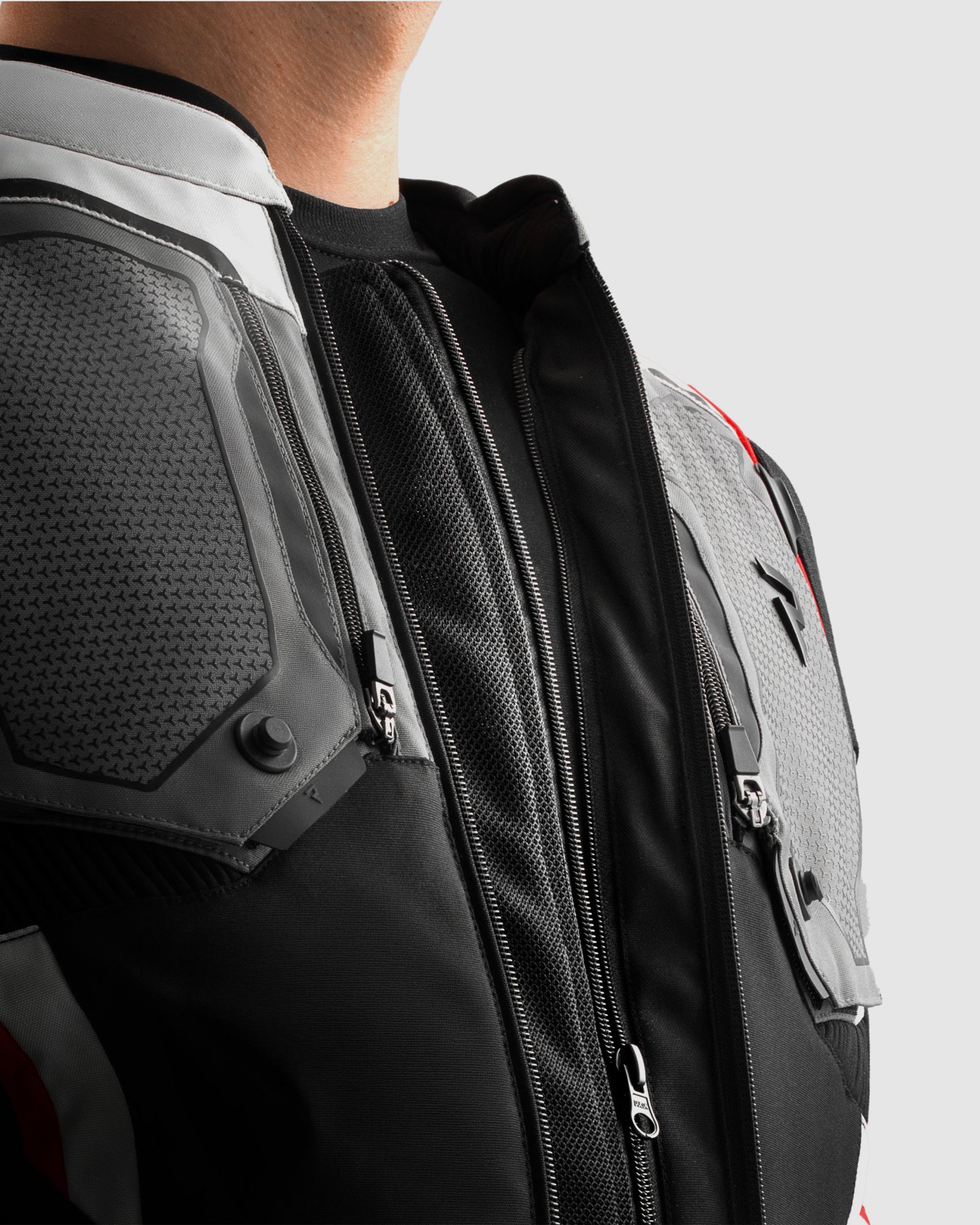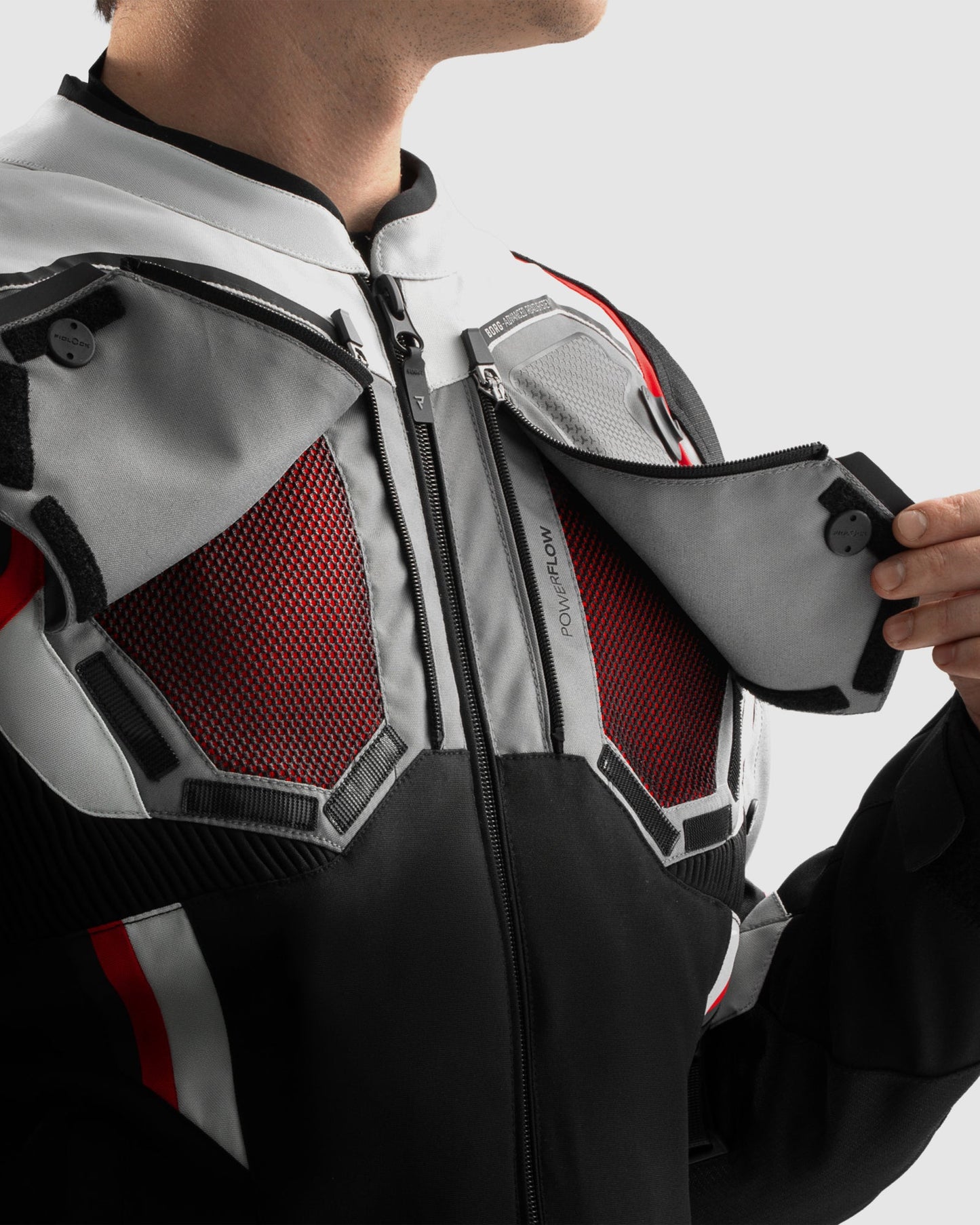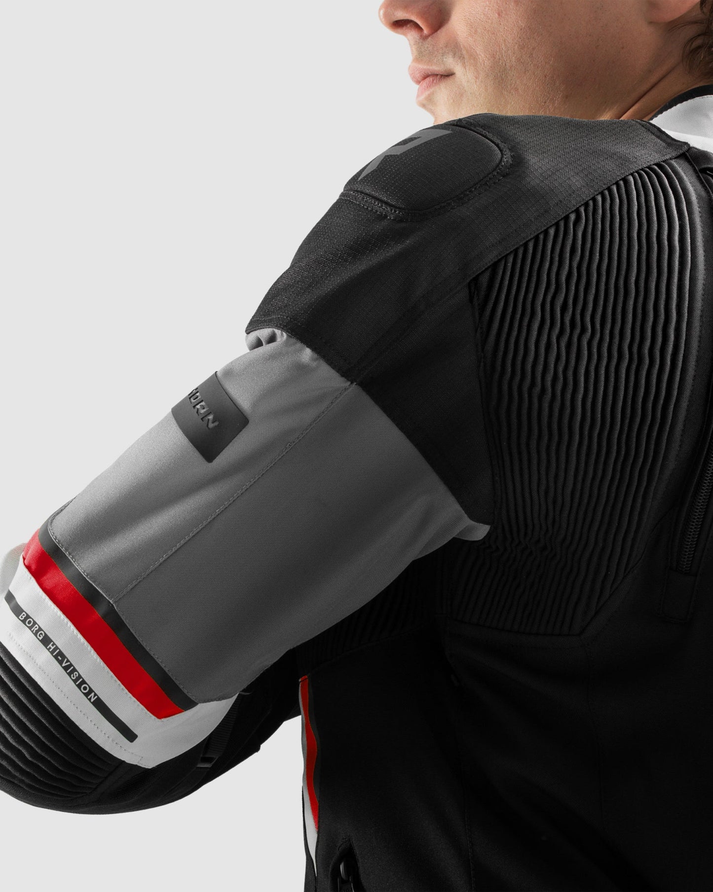 Borg II Blouson Moto Noir, Gris, Rouge